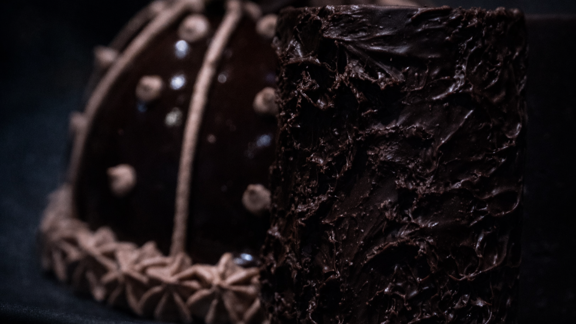 ムースの表面には艶やかなグラサージュを施し、兜の美しい光沢を表現。