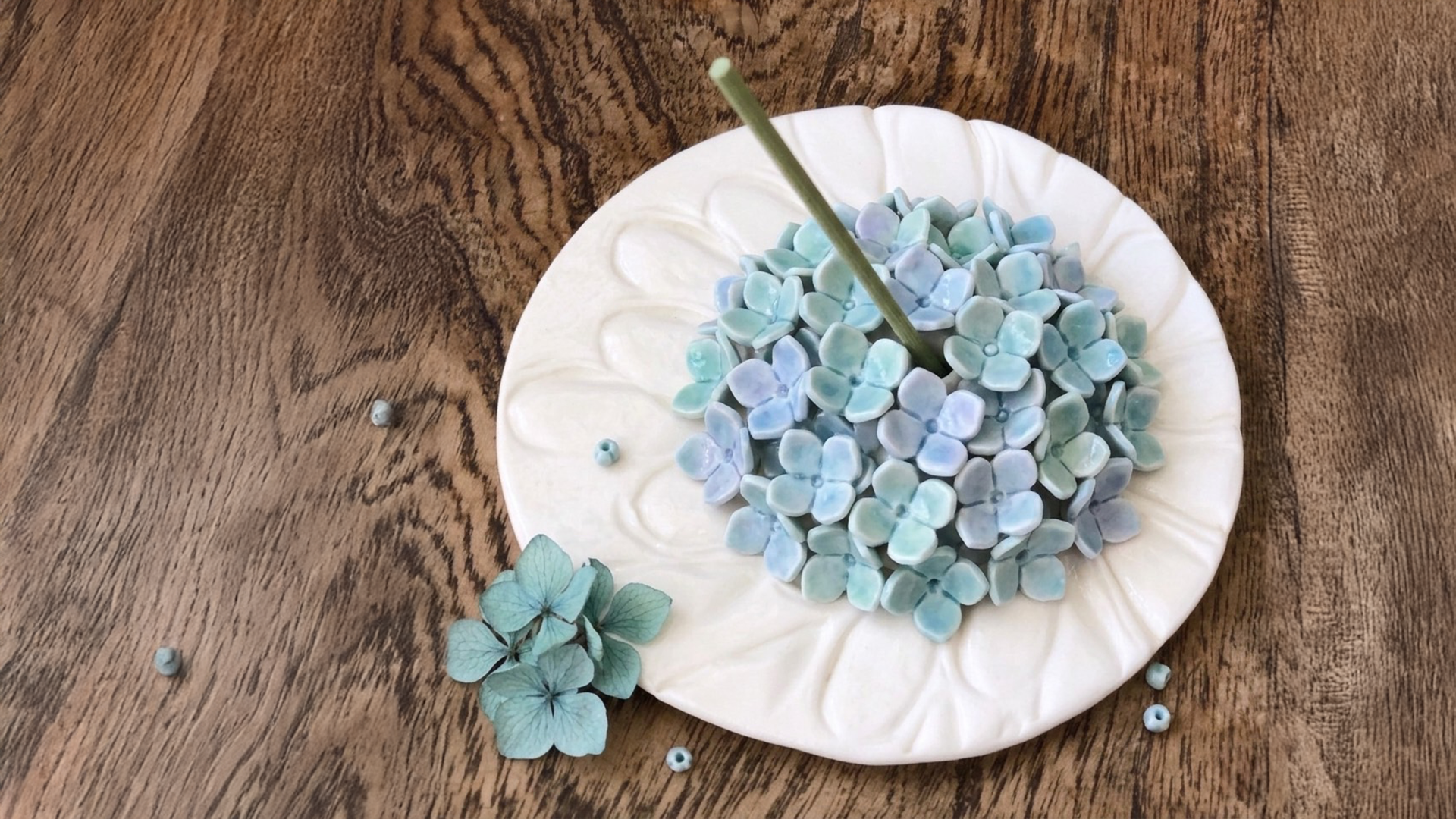 【内容】立体の紫陽花のお香立て